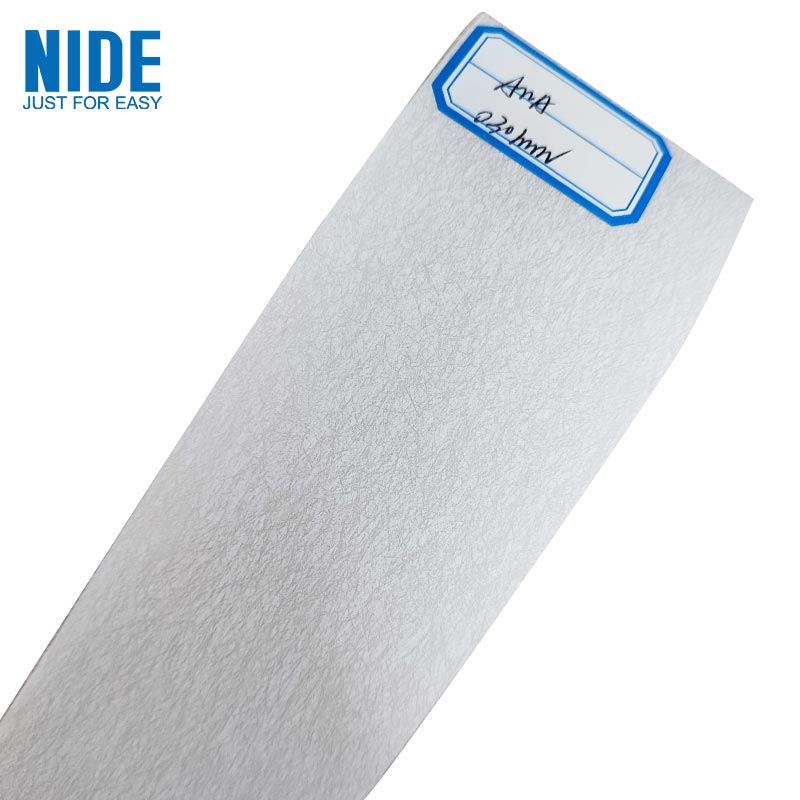 Awọn ohun elo idabobo AMA jẹ iru awọn ohun elo ti o ni asọ ti o rọ, eyiti o jẹ iwe idabobo mẹta-ila ti a ṣe ti fiimu polyester ti a bo pẹlu alemora ati ti o ni asopọ pẹlu iwe aramid ti apa meji. Lo F-grade lẹ pọ, eyi ti o daapọ awọn ti o dara ga otutu resistance ti aramid iwe ni 220 ° C, ti o dara darí toughness ati ti o dara dielectric agbara ti polyester film. O ti wa ni o gbajumo ni lilo ninu itanna itanna, ati ki o jẹ dara fun inter-Iho idabobo, inter-Tan idabobo ati ikan idabobo ti Motors.
